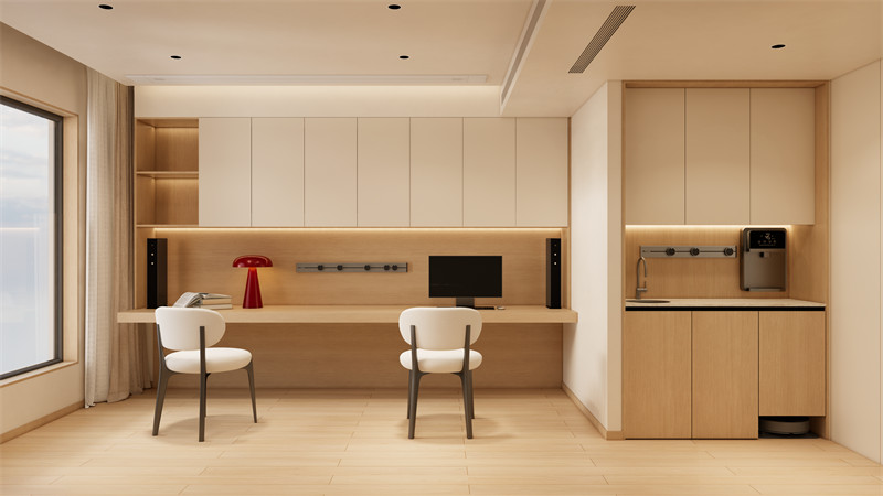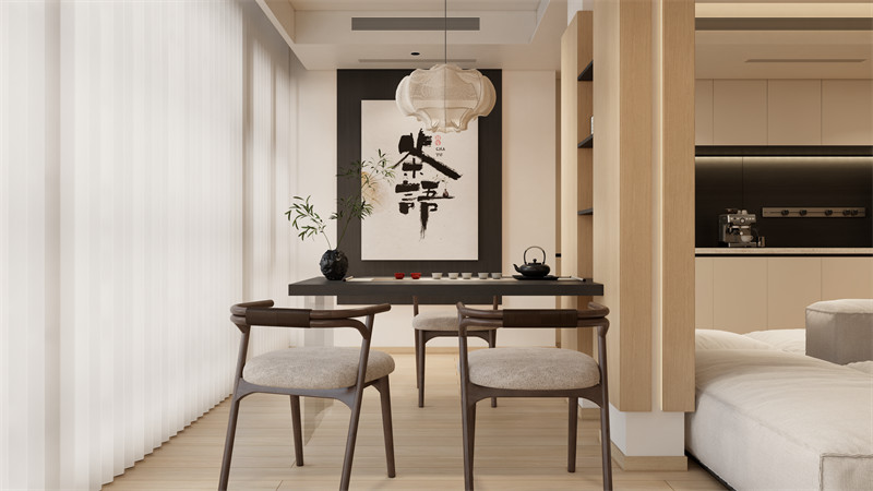 风格定位上,“慢半拍·丹玲居”将“禅风、原木、复古、现代”四大元素巧妙融合,打造出一种既古典又时尚、既简约又富有内涵的独特风格。原木的自然质感与复古的装饰元素相得益彰,为空间增添了几分岁月的沉淀与温度;而现代设计手法的运用,则让整体空间更加通透、流畅,展现出一种与时俱进的时尚气息。