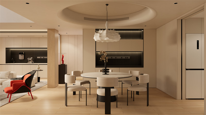 设计灵感源自于女主人对未来生活环境的向往与憧憬。她渴望在繁忙的都市生活中找到一片属于自己的宁静之地,享受那份悠然自得的生活节奏。从“时间放慢了脚步”的温柔瞬间,到“晨光轻抚、午后茶香、夜幕低垂”的每一个生活片段,都是她对美好生活的向往与追求。同时,她所描述的“丹以赤为主”“以朱色涂物为丹”以及“声音玲玲作响,玉声悦耳动听”的意境,为设计提供了丰富的灵感来源。因此,我们提取了“丹”与“玲”两个元素,作为“慢半拍·丹玲居”设计的灵魂与精髓,寓意着居住者将在这里享受到如诗如画、悦耳动听的美好生活。