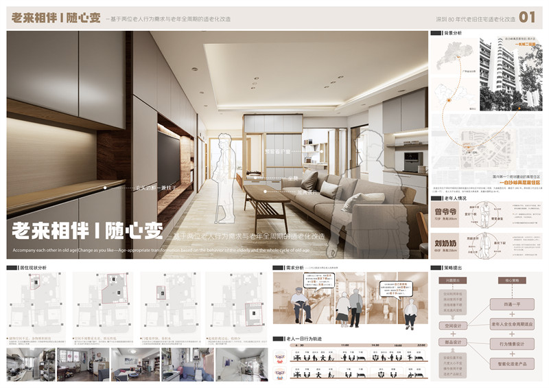 2.作品名:老来相伴·随心变 – 基于两位老人行为需求与老年全周期的适老化改造