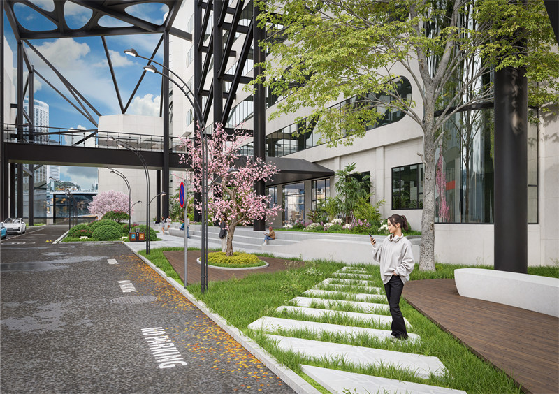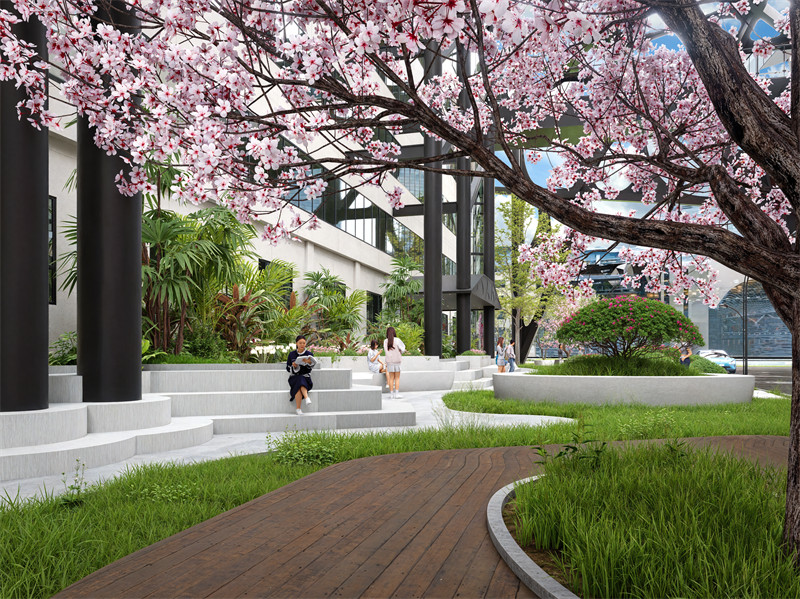 我们利用原本s教学楼的后门,在楼间花园增设了道路,让两栋教学楼之间的连通性得以改善,将原本贫瘠的草地重新设计布局,增设了供学生们阅读休憩的座位,并引入了可供观赏的花草树木,不同的植物不仅能为花园带来不同的视觉效果,还能在季节变化中展现出不同的美感。其次,本方案通过一些独特的设计元素,提升花园的美观度和实用性。例如,设计若干座位和台阶,和一些防腐木地板,增加花园的动感和生机;添加了灯光设计,打造一个夜间也能使用的花园空间。