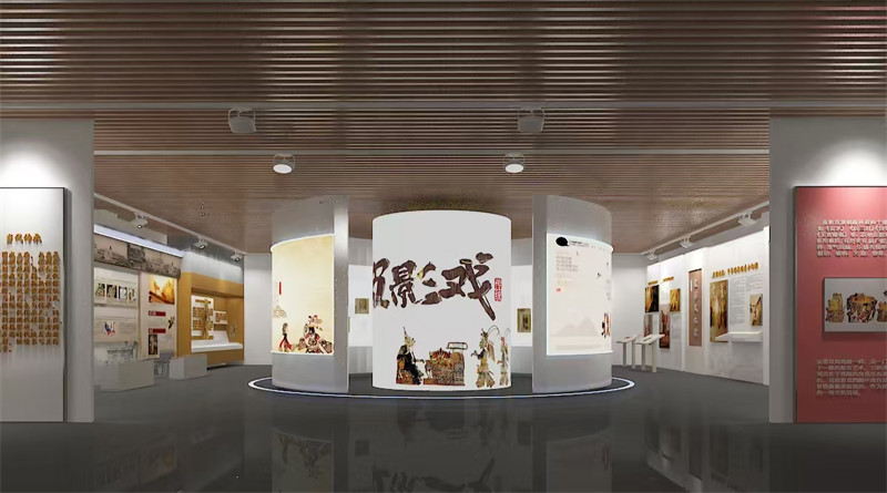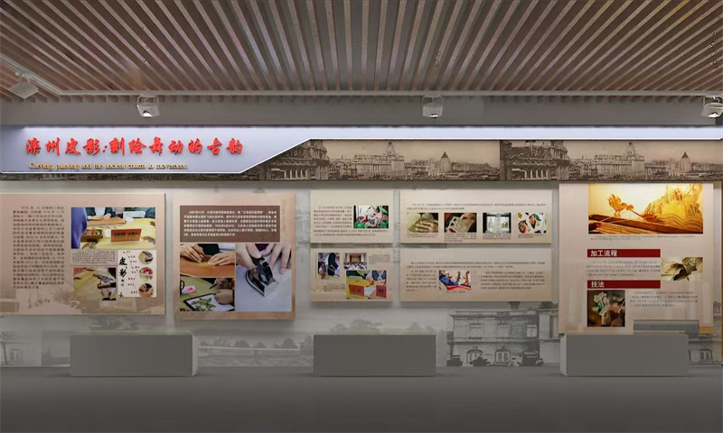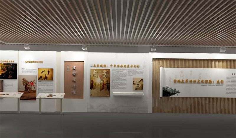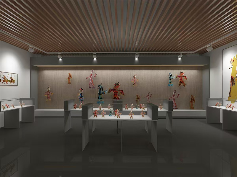 造型特色:通过精美的展柜展示不同角色、风格的滦州皮影人偶,配以灯光聚焦,突出其细腻的雕刻和精美的色彩。人偶的展示角度和高度都经过精心设计,便于观众全方位欣赏。