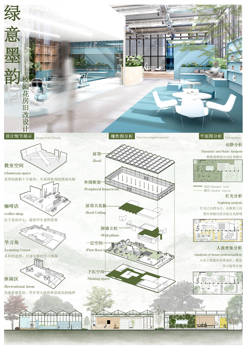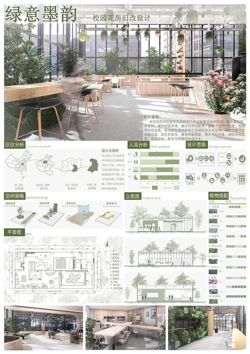 2.作品名:绿意墨韵 – 校园花房旧改设计