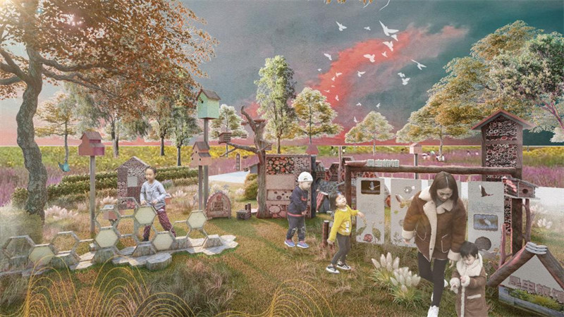 在文化层面,通过整合资源,打造文化品牌,创建文化宣传平台,在全龄友好层面,打造多维度文化活动设计,为周边学生提供研学文化,打造研学文化教育活动。产业发展通过游学这一媒介进行串接,发展环保型产业手工业和赏花游学服务业,在花乡文化上,将花乡情怀游这一模式构成产业结构发展链条,打造各项业态模式。活力赋能上,运用健康城市这一发展模式,构建场地漫步系统,建设运动广场。功能日夜置换,承载昼夜不间歇经济文化生活,打造公园发动机,整合多种基础设施。生态策略上,我们打造全龄参与式社区花园,促进生态可持续计划,通过共建共治共享理念实现绿色追求、第二课堂、记忆延续的效果。在植物配置上坚持持续与创新相结合,打造四时观花之盛景。