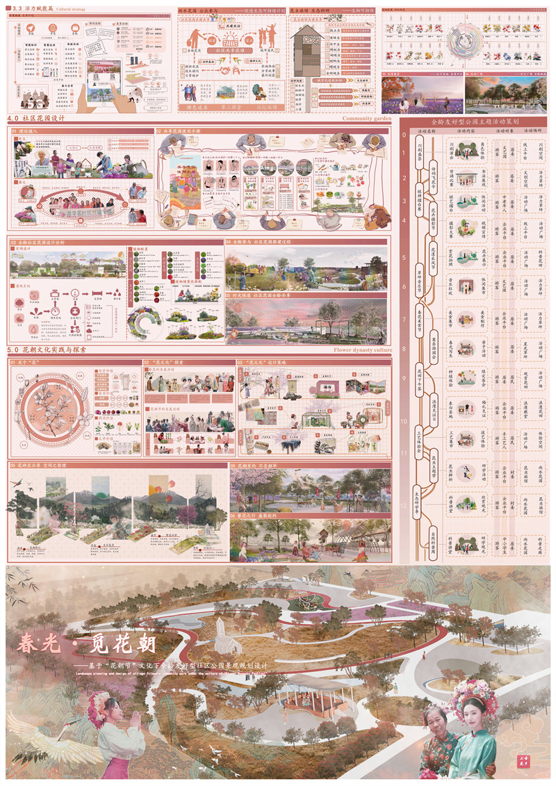 2.作品名:春光·觅花朝 – 基于“花朝节”文化下全龄友好型社区公园景观规划设计
