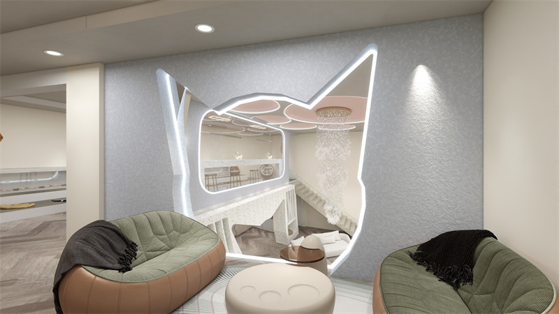 在顾客就座区的设计上,确保了顾客能够方便地观赏到猫咪的活动。座位围绕着猫咪活动区域设置,采用不同的高度和布局, 让顾客有多种选择。在顾客与猫咪互动方面,提供了一些互动道具, 并且工作人员可以引导顾客如何正确地与猫咪互动,如抚摸的位置、力度等。为了满足顾客的口味需求,猫咖的菜单上也也提供了一些精致的点心和饮品。这些美食不仅能让顾客在品尝中感受到独特魅力,还能与猫咪的陪伴形成完美的搭配。设计一个完美的宠物空间,不仅是对宠物的呵护,更是我们对它们深深的爱的体现。这样的猫咖空间,既是猫咪的快乐天堂,也是人类放松身心的好去处。