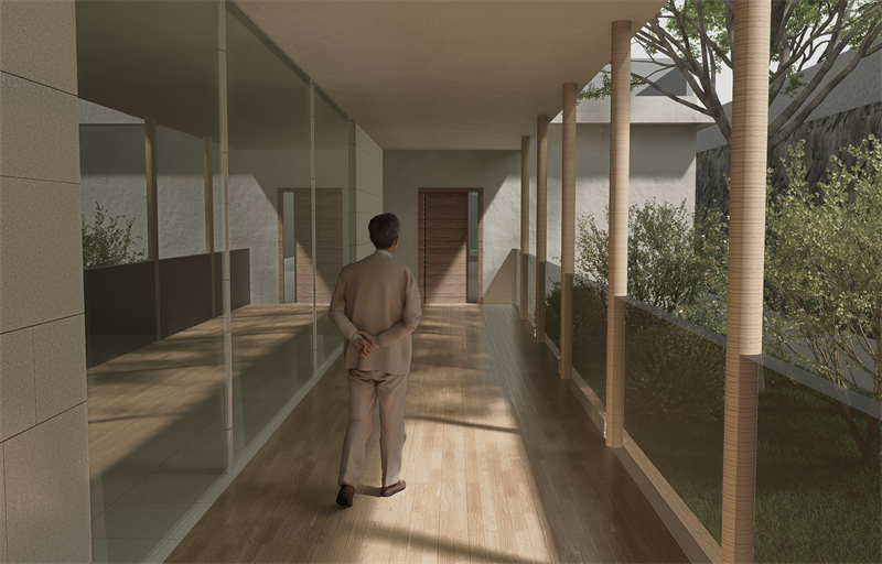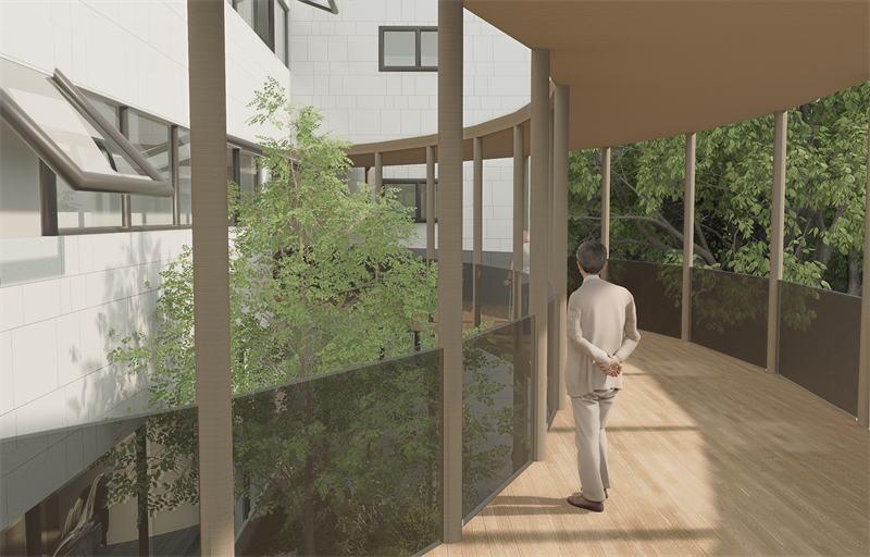设计关注老幼共享空间的组织如屋顶花园、一层打通的共享教室活动室等。立足与保障安全性的基础上促进两个群体的交流,做到双方能有各自学习生活的同时能够相互影响,相互学习。
