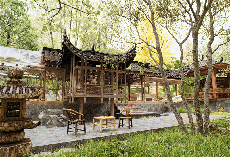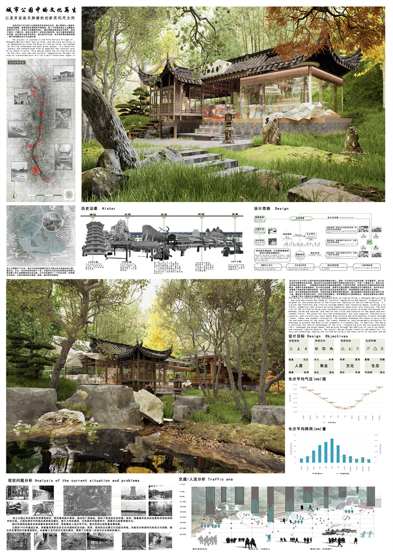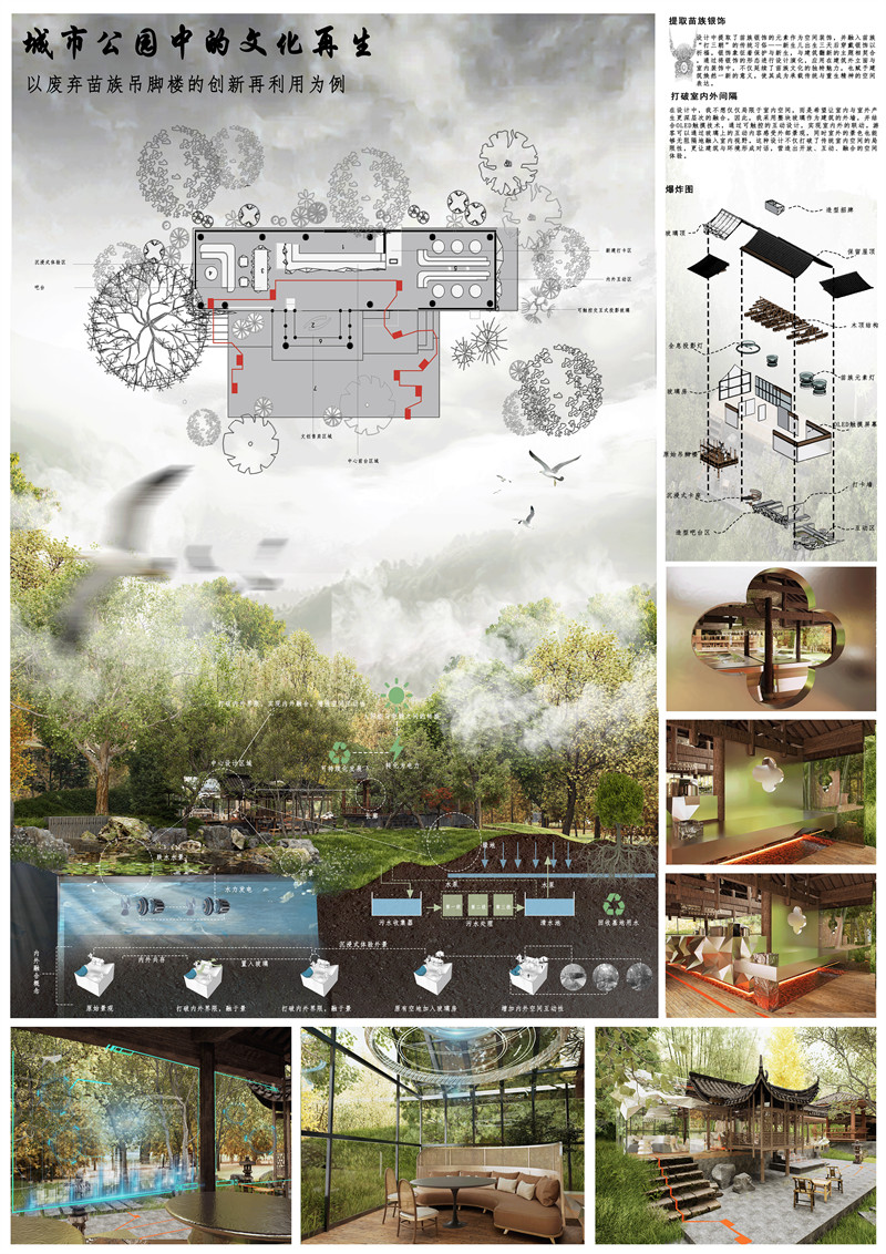 2.作品名:城市公园中的文化再生 – 以废弃苗族吊脚楼的创新再利用为例