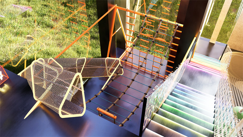 通过精心设计的细微高差与地形的完美融合,利用了立面的每一寸空间,精心布置了一系列潮流娱乐项目,不仅增强了空间的层次感和趣味性,还使得整个区域焕发出独特的活力。与此同时,经过抬升的室外观景区域,其视野得到了显著提升,为游客带来了更加开阔、震撼的景观体验。