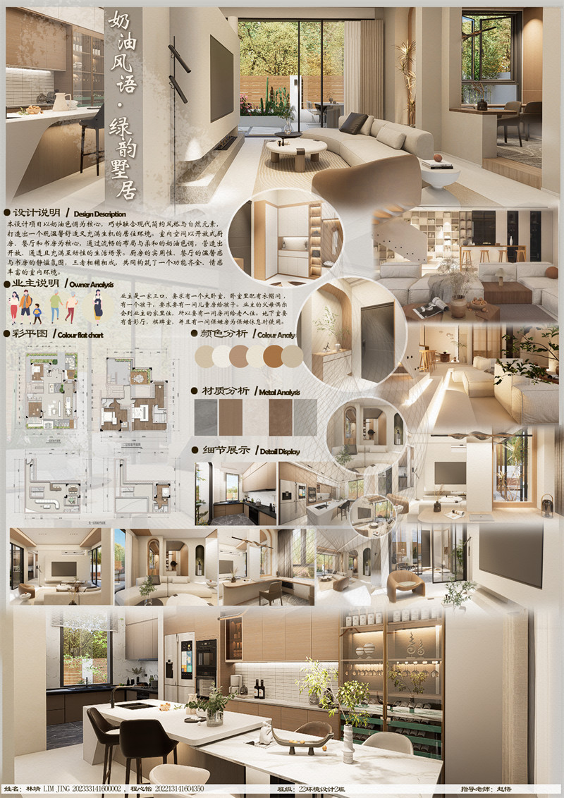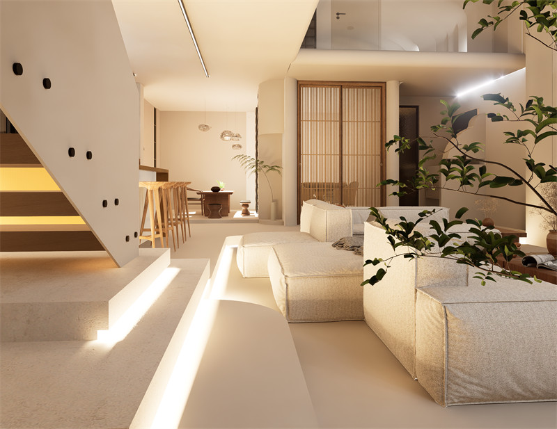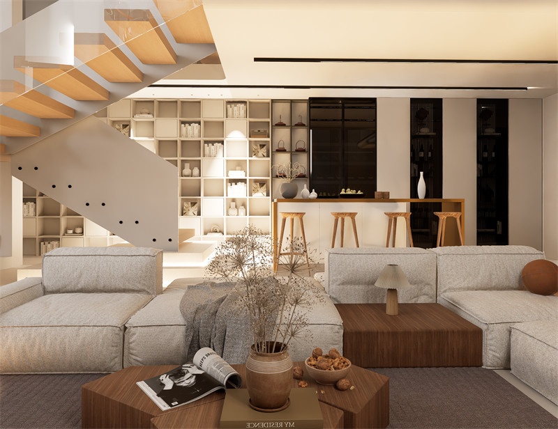 本设计项目以奶油色调为核心,巧妙融合现代简约风格与自然元素,打造出一个既温馨舒适又充满生机的居住环境。室内空间以开放式厨房、餐厅和书房为核心,通过流畅的布局与柔和的奶油色调,营造出开放、通透且充满互动性的生活场景。厨房的实用性、餐厅的温馨感与书房的静谧氛围,三者相辅相成,共同构筑了一个功能齐全、情感丰富的室内环境。别墅设计以奶油风为主题,旨在打造一个温馨、优雅且富有质感的居住空间。整体色调采用暖黄色,如同阳光般柔和,给人以温暖与安心之感,让居住者在踏入家门的瞬间,便能褪去疲惫,沉浸于宁静舒适的氛围之中。