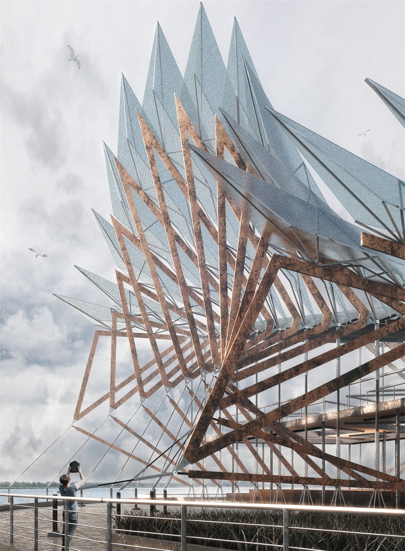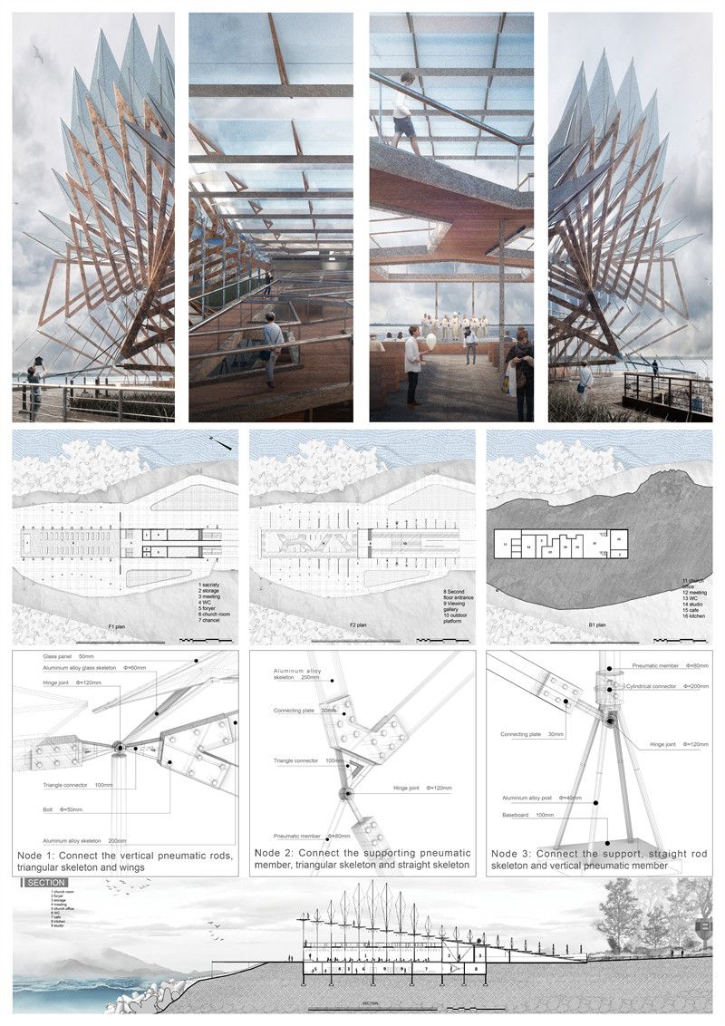 这座教堂最为独特的亮点在于其动态结构设计。建筑的翅膀能够随着海风轻缓摆动,与自然节奏产生共鸣,仿佛一只真实的鸟儿,在海浪与风声的伴奏下翩然起舞。这种与自然的互动表现出建筑对环境的敏锐感知,也象征了爱情的真谛——灵动而充满生命力,虽在不断变化,却始终保有纯粹与美好。无论是潮汐的律动,还是婚礼仪式上的音乐节拍,都能与翅膀的动态形成和谐的呼应。这一设计不仅是对技术的卓越运用,更是对自然与人类情感深刻关系的诗意表达。