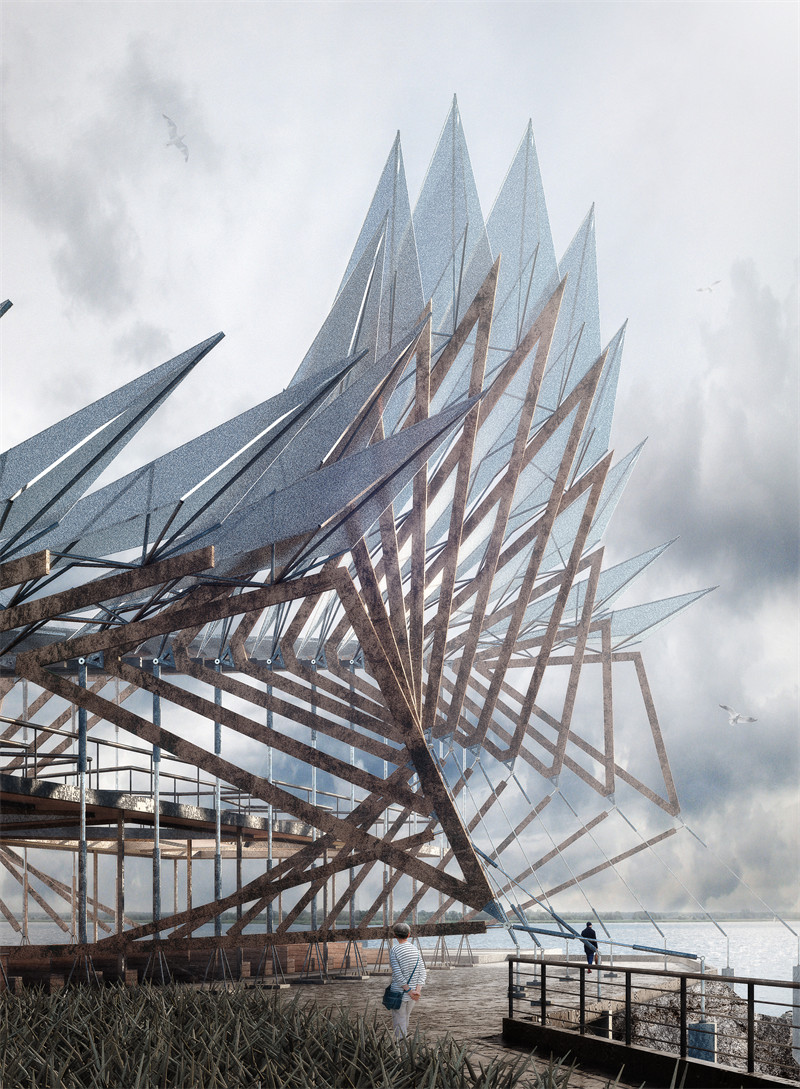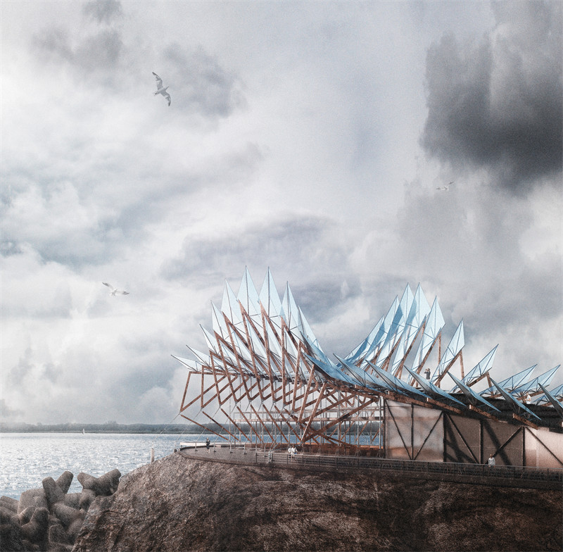 教堂面朝辽阔的海洋,整体设计与自然深度对话,仿佛为访客打开了一扇通往心灵深处的门。建筑将环境的宁静与浪漫演绎得淋漓尽致,所有前来的人,无论是见证婚礼的亲朋好友,还是静心冥想的独行者,都能在这里感受到一种超越时间的平和与灵魂的升华。通透的开放式结构让阳光和海风自由流动,赋予空间鲜活的生命力。翅膀形态的设计不仅视觉上引人入胜,更在功能上为整体建筑注入独特的灵动气息。