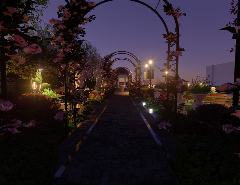 公园内的长椅、路灯等公共设施,均采用了法式与中式风格相结合的设计。路灯则借鉴了法式路灯的造型,搭配上海派风格的月亮灯,散发出柔和而温馨的灯光。这些细节的处理,不仅提升了公园的整体品质与美感,更让游客在不经意间沉浸于法式海派文化的氛围之中。