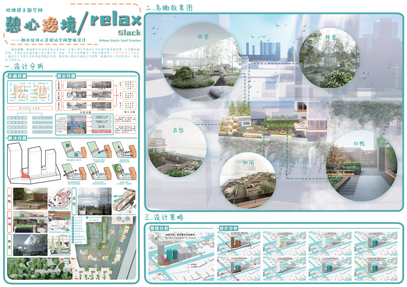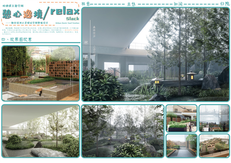 2.作品名:基于松弛感的城市空间微更新”憩心逸境“都市绿洲心灵驿站设计