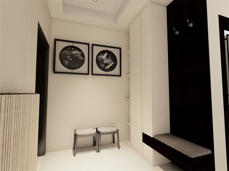 选用疗养床,方便老人上下床;床边设置紧急呼叫按钮,与社区或家人手机相连;衣柜内部设计合理分区,方便老人整理衣物;增加夜间感应照明,避免夜间摸黑摔倒。将与客厅之间的隔墙开窗洞,使空间更加通透,也方便了保姆对老人进行照顾。