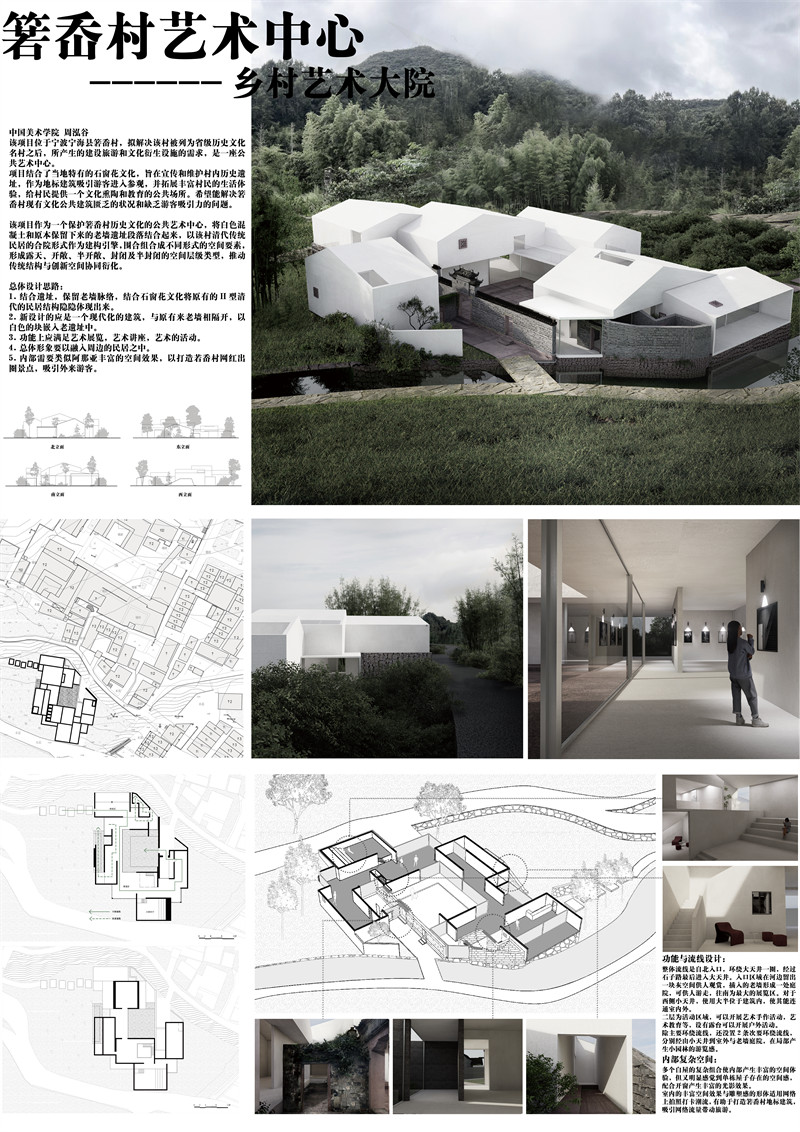 该项目位于宁波宁海县箬岙村,拟解决该村被列为省级历史文化名村之后,所产生的建设旅游和文化衍生设施的需求,是一座公共艺术中心。