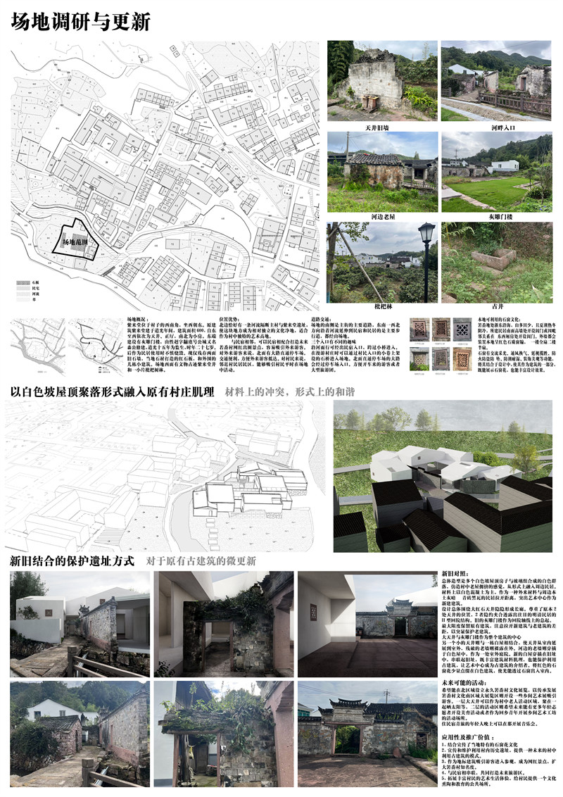 项目结合了当地特有的石窗花文化,旨在宣传和维护村内历史遗址,作为地标建筑吸引游客进入参观,并拓展丰富村民的生活体验,给村民提供一个文化熏陶和教育的公共场所。希望能解决箬岙村现有文化公共建筑匮乏的状况和缺乏游客吸引力的问题。