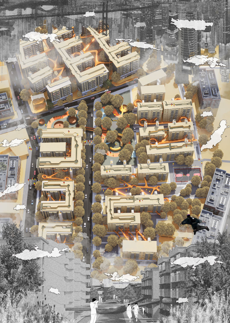 在全球心血管疾病发病率上升的背景下,基于心血管疾病的疗愈,我们提出“运动网”这一概念,意在打造针对不同社区人群,不同病况人群,不同行为方式的新型运动社交形式,在此基础上,我们引入“阈”空间的概念,意在将整个“运动网”打造成为社区交流的空间,提高社区的活跃度,再大到加强社区与社区间的联络,我们的设计干预策略专注于改善居住环境,以促进健康。我们通过以下方式实现这一目标: