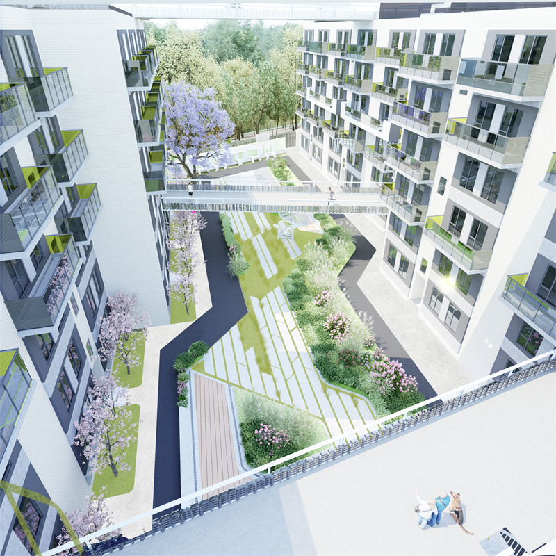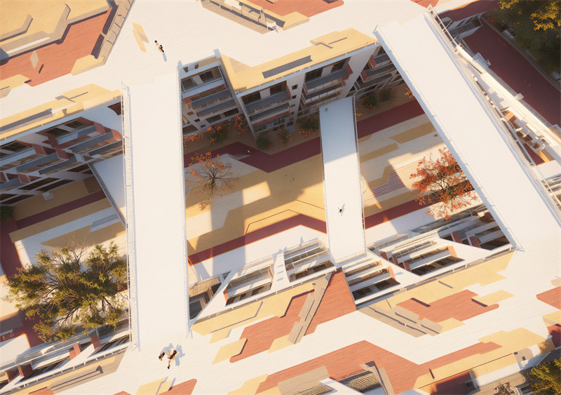 通过儿童提出的“绿色共生”和“建造廊桥”等建议,我在第二次实地调研时发现该区域还居住着许多小动物。因此,我希望创建一个人与动物可以互动的新型空间。这个空间不仅能够连接人类与自然,还可以增加公共空间面积。我采用了上下层空间的设计形式,不仅可以在人员密集时实现良好的分流,还为小动物提供了新的活动场所和庇护空间。
