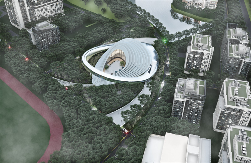 设计理念源于对校园生活的深刻理解和对未来教育空间的无限想象。环形建筑形式不仅美观独特,更具有强大的功能性和凝聚力。其流畅的线条、开放的空间布局,为师生提供了互动交流的多元化场所。环形设计寓意重生与更新,团结与和谐,还体现了校园文化的包容性和连续性。
