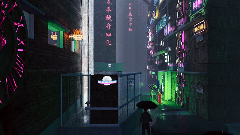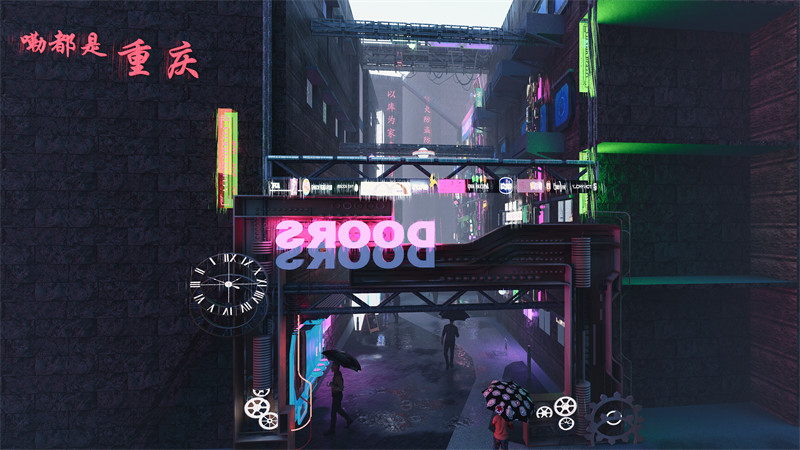 2.作品名:赛博迷雾巷 – 重庆金紫山文创园外观改造