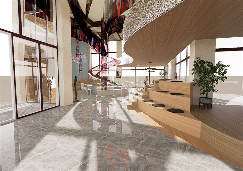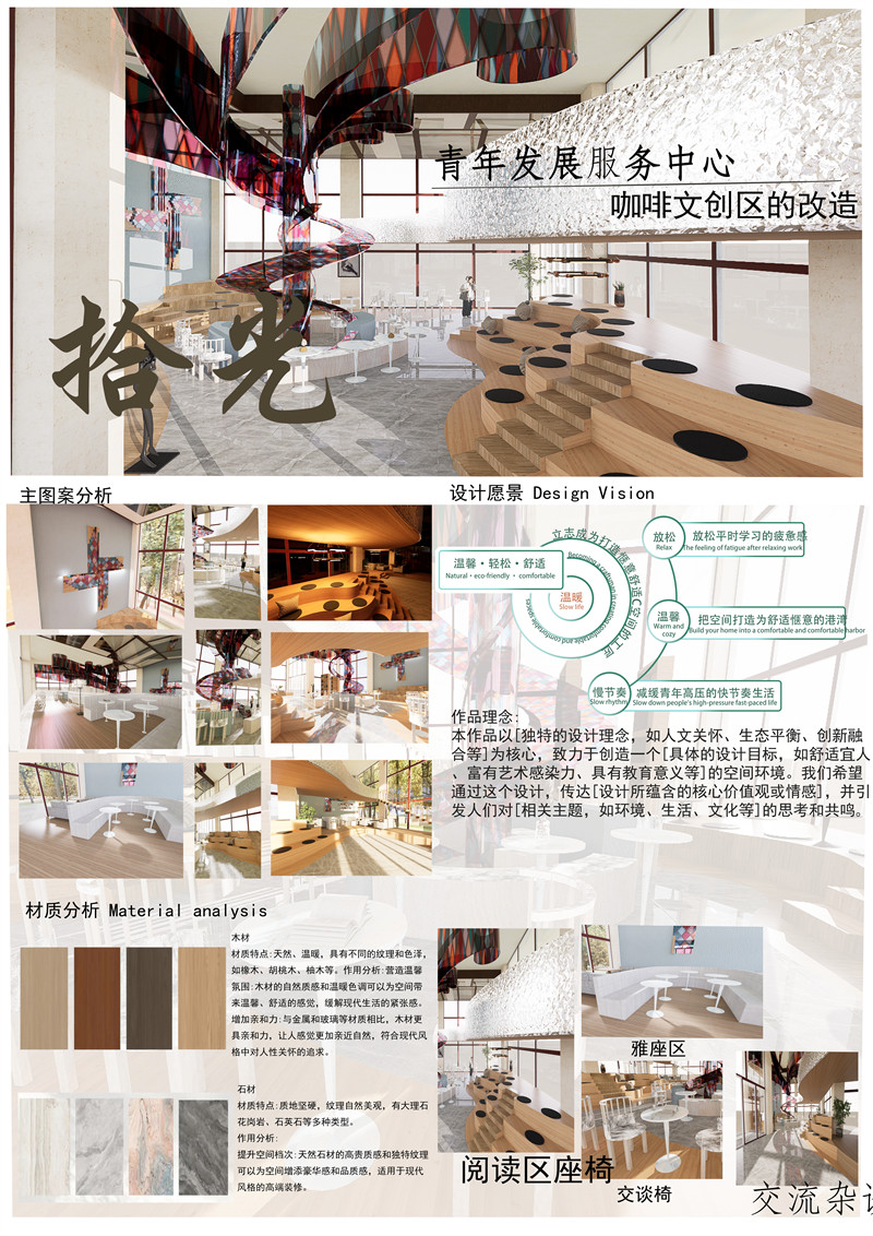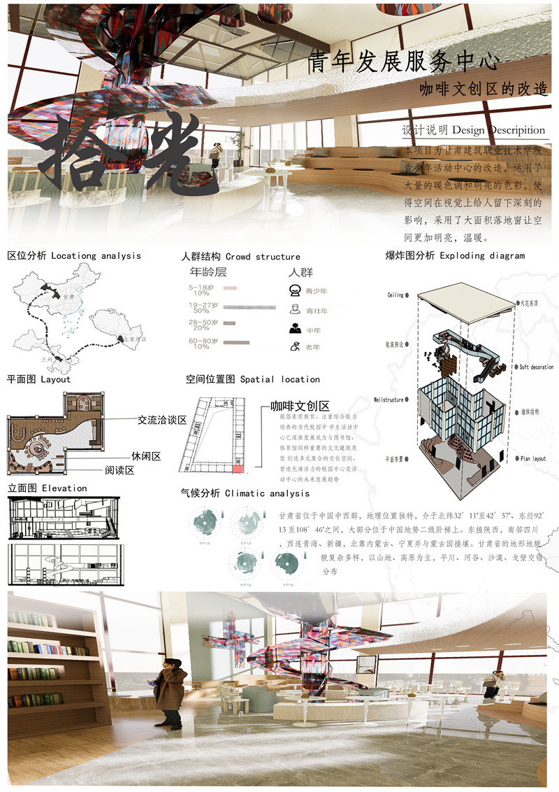 我们设计改造的是一个甘肃建筑职业技术学院的青年发展服务中心,我们把它改造成了一个文创咖啡厅。