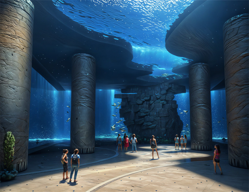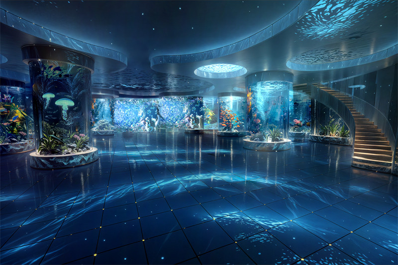 整体策划:我们主要打造海洋的氛围,使游客们身临其境,感受海洋的奥秘与神奇,沉浸式VR互动影厅、碧海潮声(海洋生物展览馆)蓝白之恋(鲸鱼雕像馆)以这三个馆为主题,打造沉浸式以海洋为主题的海洋馆,此馆还配备有休息区,采用极好的隔音材料,室内循环播放海浪背景声,搭配蓝色的柔光是人们身心放松,此外还配有小吃区都是当地特色的海产品,海洋主题的甜品、小吃。为人们提供了很多便利的场所,还设置了母婴房、吸烟区,基础设施齐全。