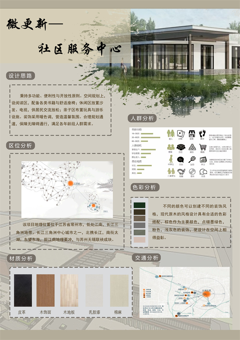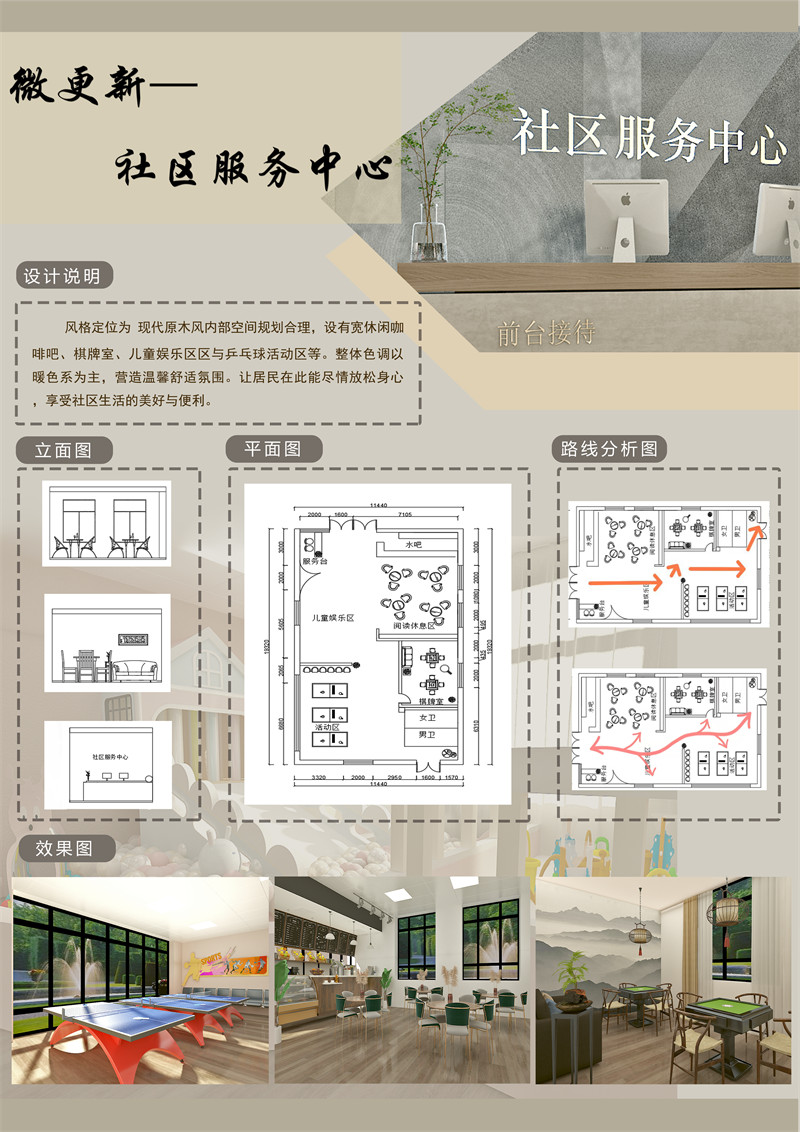 ①以人为本:充分考虑居民的使用需求与行为习惯,打造舒适、安全、无障碍的空间环境。从入口的引导到内部功能区域的布局,都以方便居民活动为首要原则,设置合理的通道宽度、休息区域与服务设施高度等,确保不同年龄段与身体状况的居民都能自如使用。