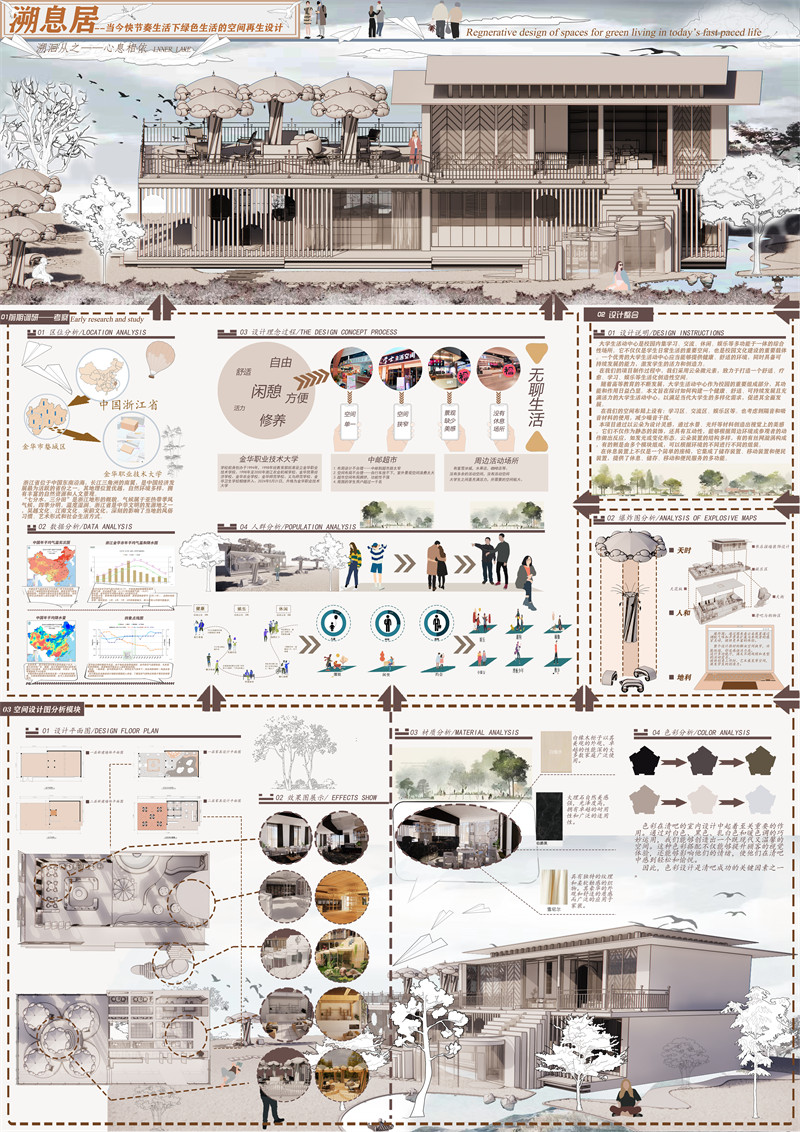 构建一个绿色有氧健康的生活空间,让当今大学生在快节奏生活中适当放缓脚步,保护他们身心健康,为他们营造出舒适和谐的氛围空间。