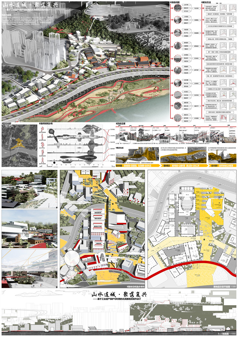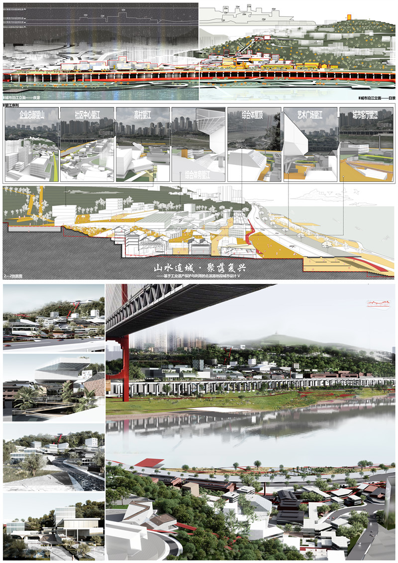 2.作品名:山水连城·聚落复兴 – 基于工业遗产保护与利用的北滨路地段城市设计