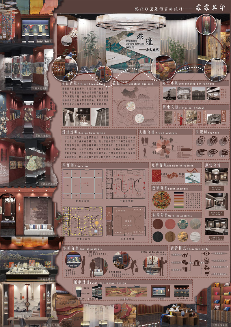 2.作品名:裳裳其华——现代非遗展馆空间设计。