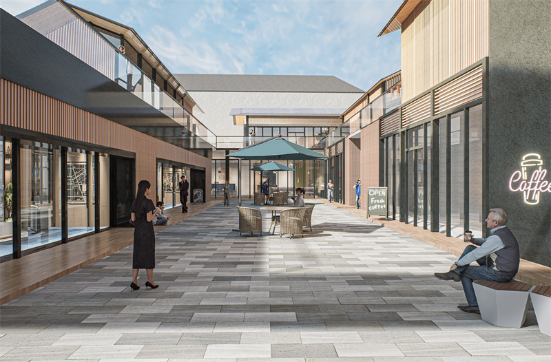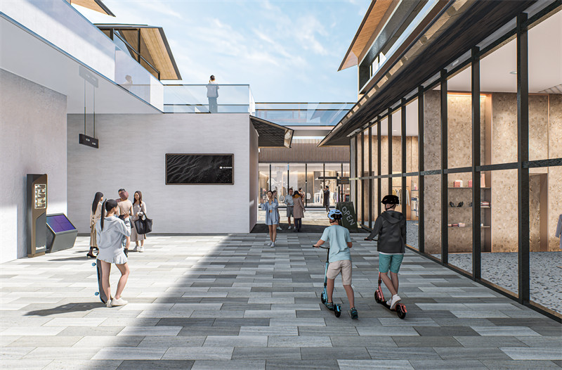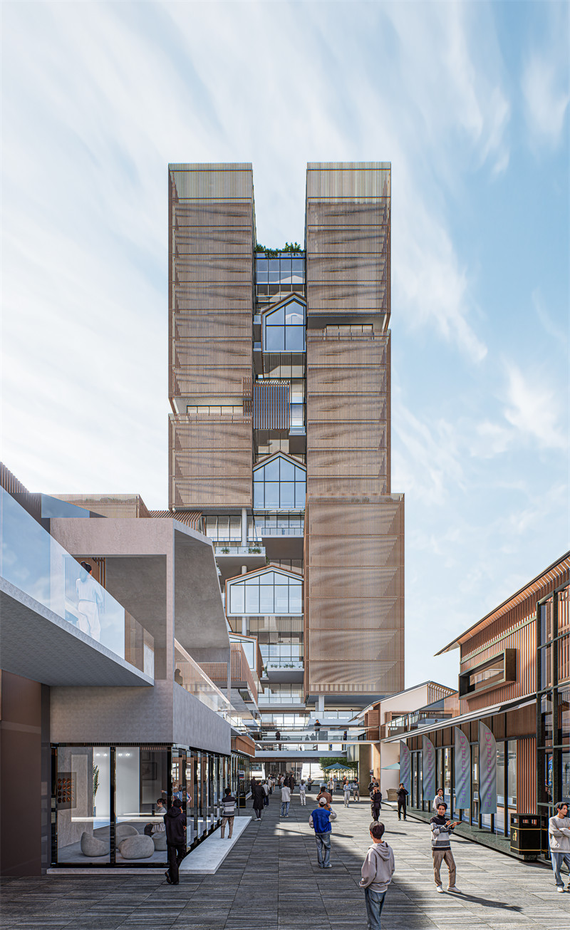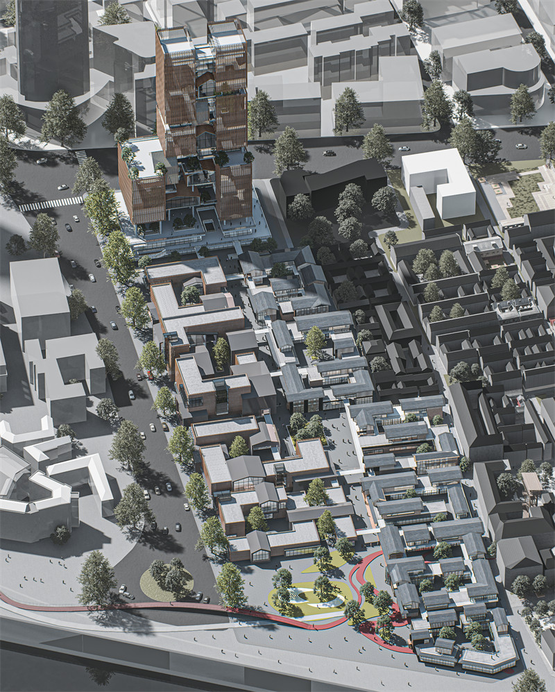 主轴线西侧的建筑体量和建筑布局呼应场地西侧的老城区合院体量和组织形式,主轴线东侧的建筑体量和屋顶形式呼应场地东侧的洋房建筑体量和建筑元素。