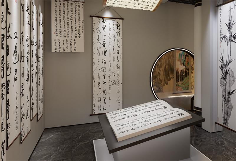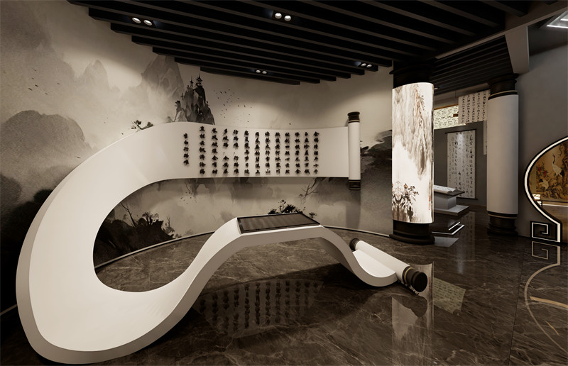 沉浸观赏区专注于展示著名画作与书法作品,通过严格的安防措施,既确保了珍贵书画作品的安全,又维护了游客的人身安全。同时,该区域巧妙运用先进的投影仪、雾化器等智能化设备,营造出一种身临其境的观赏体验,使游客能够深刻感受到书法文化的独特韵味与无穷魅力。沉浸观赏区的设计不仅注重实用性与安全性,更在艺术性与创新性上追求卓越,为游客提供了无限遐想的空间,让每一次参观都成为一次难忘的文化之旅。