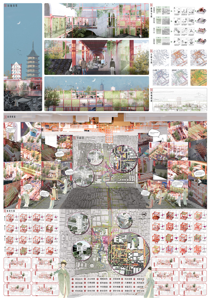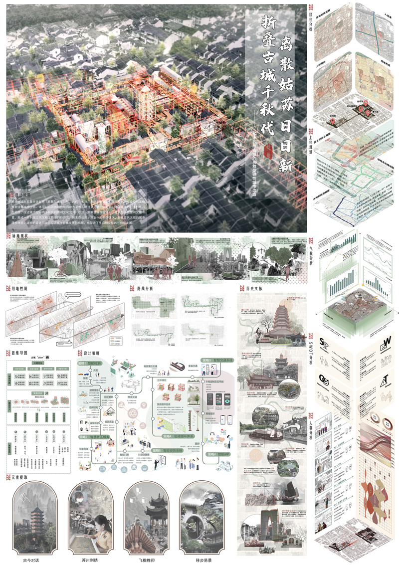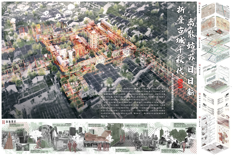 2.作品名:折叠古城千秋代,离散姑苏日日新 – 基于苏州古城的离散型弹性城市改造。