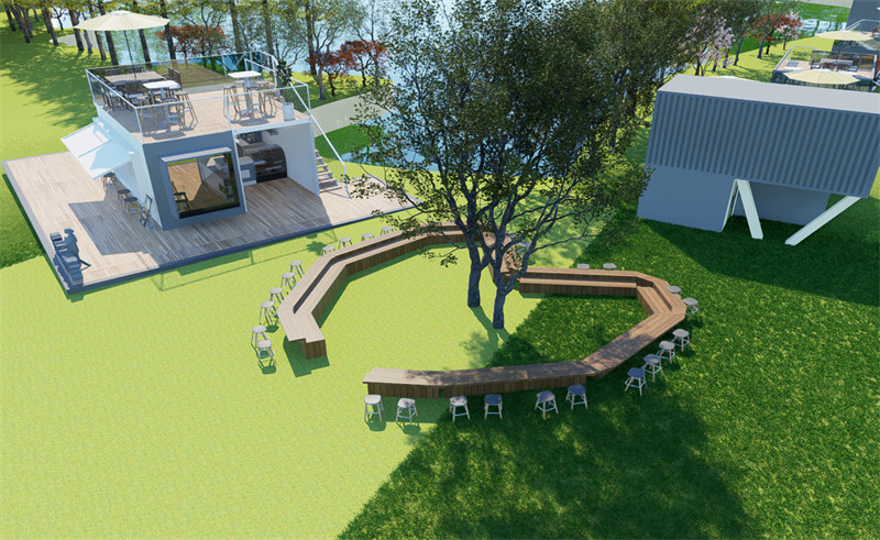 社交篝火区:打造中心篝火广场,以环形原木座椅围合,夜幕降临燃起篝火,搭配露天电影、乐队舞台,成为游客畅聊交友、分享故事的社交主场。