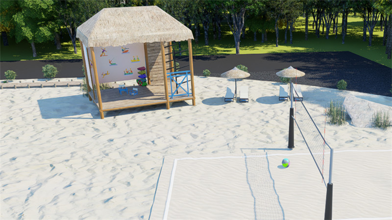 运动活力区:开辟帆板、冲浪专属场地,配套专业教学点与器材租赁;沙滩排球场地升级,安装智能计分系统,满足赛事需求。