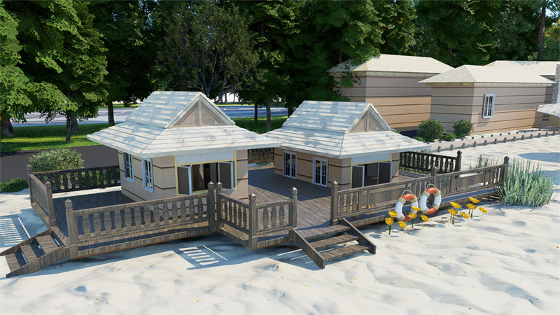 休闲亲水区:拓宽平缓沙滩,沙质精筛细腻柔软,契合家庭游客堆沙、逐浪需求;沿岸添置彩色遮阳伞、舒适躺椅,构建慵懒度假氛围;增设水上浮桥、气垫乐园,增添趣味水上互动。
