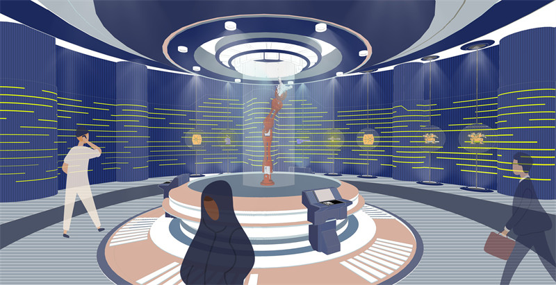 本课题主导“科技创新、探索未来、以人为本、追梦航天、太空体验”的设计理念,通过太空探索的事业发展给人带来的科技成果与对未来的想象,创造一个给人创新式体验感与能启发无限思维的科创空间。使人在此空间内产生震撼的心理感受同时创造出更多的事物。