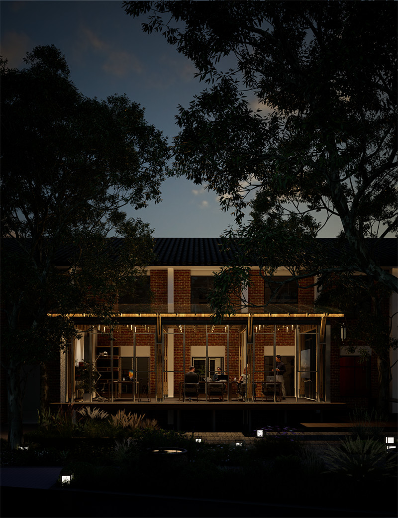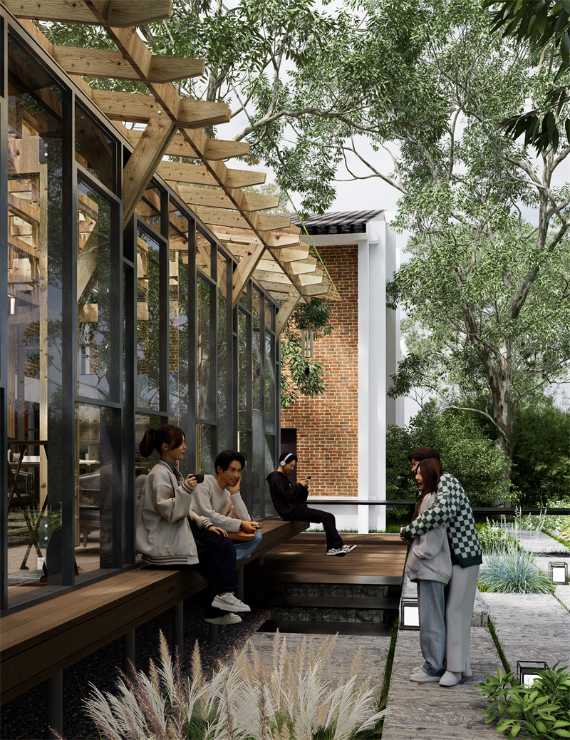 更灵活:建造上设计引入模块化设计理念,模块本体与上述地螺丝基础可以随时拆卸,并在其他场地进行组装使用,实现高机动立体组装搬运理念。功能上与既有建筑的多个空间实现连接,通过空间合理划分灵活布置功能组团。