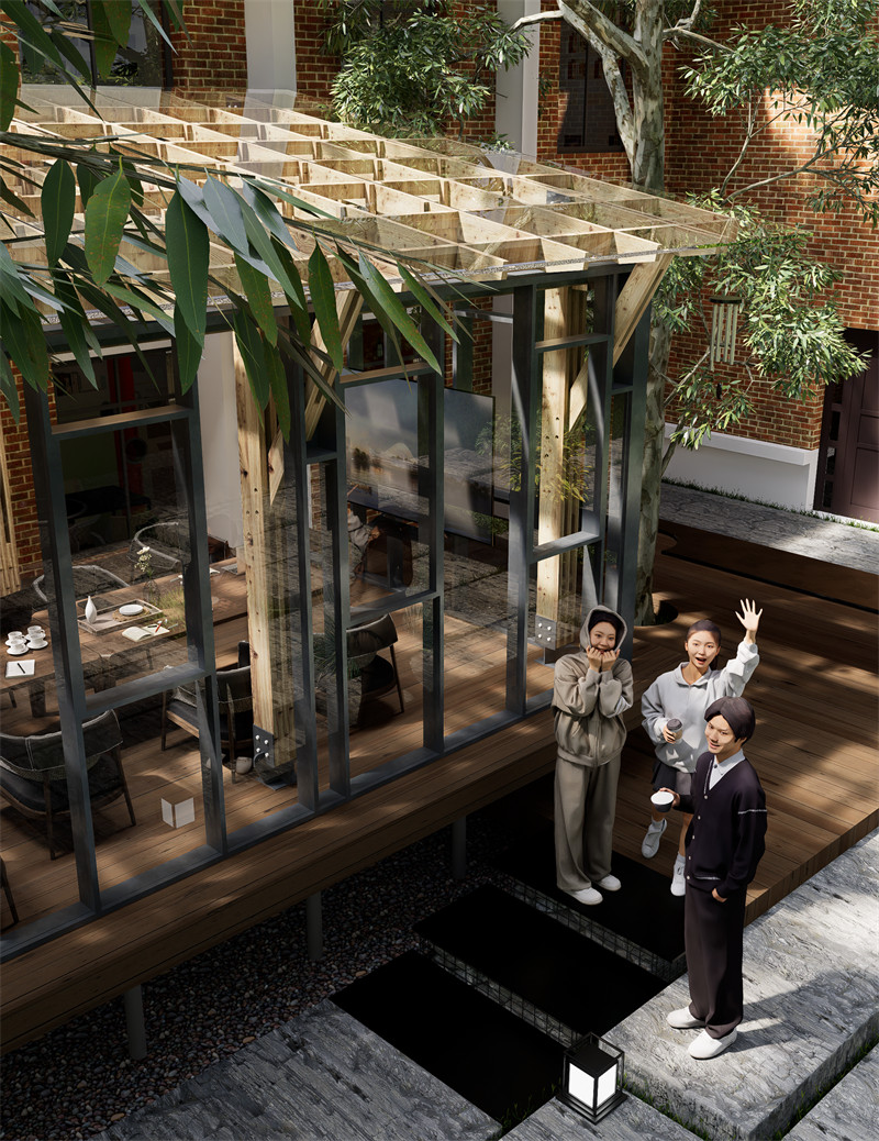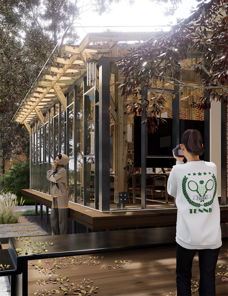 低排碳:结构方面,为实现低碳节能、轻质构造的目的,我们采用了对保护建筑影响最小的轻木结构设计方案。木材作为高效的储碳材料,对于应对气候变化、实现碳中和目标具有重要意义。且在施工和使用过程中操作简易、能耗较低,没有扬尘等施工污染,于环境保护与可持续发展具有重要意义。