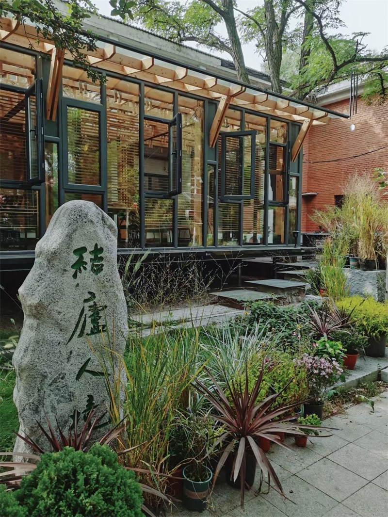 会议模块项目位于天津大学水利馆1号楼闲置绿地上,紧贴1号楼建造。场地周边自然环境优美,植物茂密成荫。为了满足师生的办公需求,同时进行一定的本科生教学,计划在场地上建造一个可移动的临时建筑模块,该模块能满足一定的办公会客需求,还兼具4-16人不同规模的会议功能。