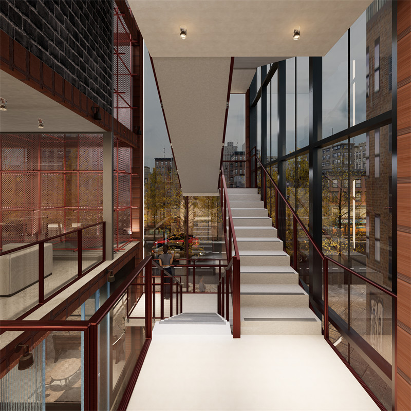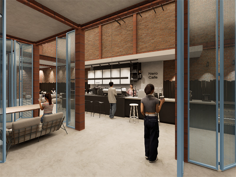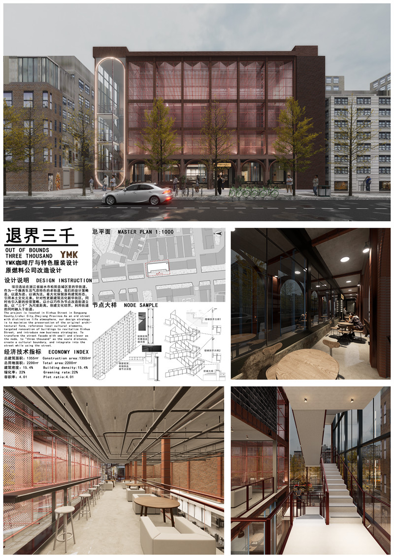 新华路承载着松阳建县以来的县域历史记忆,原燃料公司周边建筑基本都为原本政府机关单位,现因政府的搬迁导致该区域的旧楼里没有赋予新式功能,我们通过微更新的手段,使得原燃料公司的空间进行了焕新,加入了商业板块使其激发了当地的商业活力,西侧为历史文化街区,东侧为西屏山公园,处于松阳县主干道东侧。该场地周边区域将古老的传统与年轻的旋律相互交织,融合老一代与新一代人的生活方式,有越来越多的年轻人开始关注松阳的历史、游玩松阳、发展松阳,该设计也迎合了当代年轻人的新式生活,因此1-2层设置为咖啡厅,同时为了展示松阳当地特色文化品牌的服饰,在3-4层设置为特色服饰店铺。在此地建设咖啡厅与服装店相结合的功能空间,进一步提升该场地对于周边环境的历史文化气息。