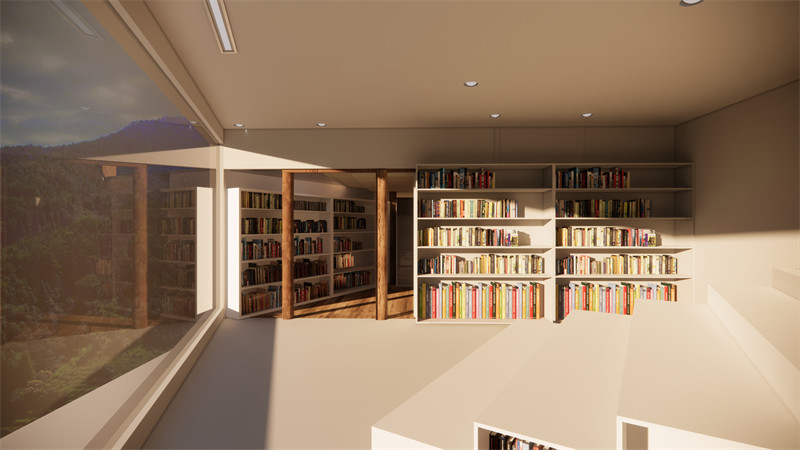 (1)旧房设计:在旧房屋结构的基础上加高屋顶,增加居住空间,并加入观景窗台,以便更好地利用场地风景。旧房设计中还包括书吧、休闲区和茶室等,为学生和教师提供多种活动选择。