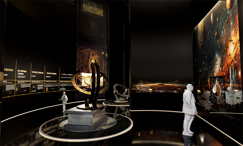 在空间布局上,天文馆采用流线型与环形设计,模拟宇宙天体的运行轨迹,营造出一种置身宇宙之中的氛围。各个展区以宇宙探索的不同阶段为主题,如“启程与探索”、“银河漫游”、“宇宙之思”“星际生命的探索”“宇宙探索的未来”等,通过高科技手段,如虚拟现实、增强现实、全息投影等,为访客提供身临其境的宇宙探索体验。天文馆不仅涵盖了宇宙的起源、演化、结构等基础科学知识,还深入探讨了人类在宇宙探索中的里程碑事件,如阿波罗登月、火星探测等,以此激发访客对人类探索精神的敬仰与传承。同时,通过引入最新的科研成果与未来科技展望,如量子计算、引力波探测等,引导访客思考科技如何改变我们的生活,以及我们如何借助科技力量进一步探索宇宙。在互动体验上,天文馆更是推陈出新,利用虚拟现实(VR)、增强现实(AR)、全息投影等前沿技术,让访客能够亲手“触摸”遥远星系,亲身体验宇航员的太空漫步,甚至“驾驶”探测器深入黑洞边缘,这些前所未有的体验,无疑将极大地拓宽访客的想象力边界,激发他们对宇宙探索的无限热情。