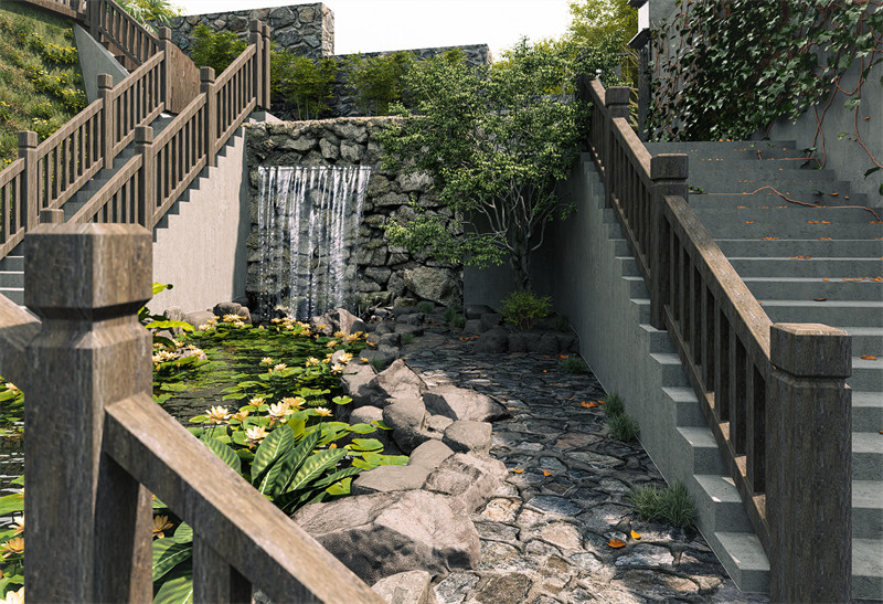 在私家庭院景观设计中要使庭院室外空间和室内空间、建筑本身保持协调和统一,即庭院室外空间的植物布置、道路的景观布置以及水景、景观小品等的布置都要