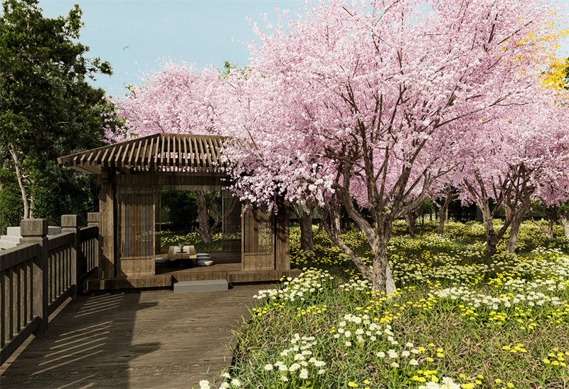 四季景观能延长景观的观赏时间,能让身居此地的家庭成员和相关消费客户在不同季节来到此地依然可以感受不同的景象,达到春可赏花、夏可观荷、秋可闻香拾果、冬可探枝寻梅的效果。