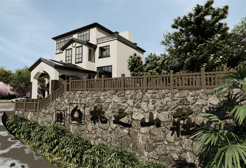 室外庭院进行整体景观设计,定位为风景优美,居家舒适的四季果园。可以考虑桃林,桂林等园林主题。室外景观部分要求有池塘,文化墙,人工湖,流水瀑布,景观廊架,观景平台,观景步道,观景亭,常绿草坪,停车坪,室外健身设备、阳光花房、茶艺棋牌、儿童游乐设备等。