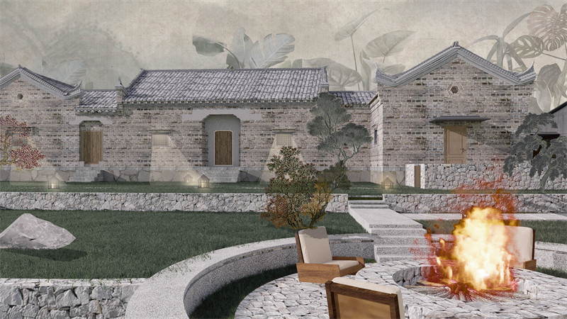 本方案旨在立足于在地主义微改造,指建筑形态能够融入周边环境取材,亦来自于当地的设计理念对老房子进行有机更新以微介入的方式恢复乡村文化,同时深入探索乡愁乡以及外貌能够依旧保持乡村的风貌和肌理保留乡愁,让人认识到传统老房子的美感,同时室内清新的建筑内部能够很好的满足人们现代生活与现代功的能需求,考虑到建筑本身较为古朴,内装以清新为原则主要改善内部使用空间的舒适度,改善幽闭环境下对住客造成的心理压力以及不适感,室内外产生碰撞营造出独特氛围感,使得游客能够在心灵情感上得到一段浪漫的极致体验。