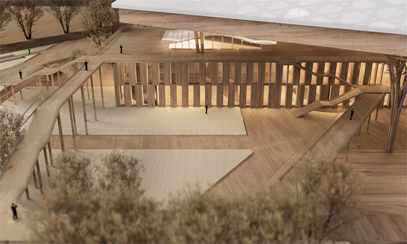 设计理念:本设计方案的核心理念正是以“虹桥”为灵感,期望打造一个能够有效连接不同功能区域的体育活动中心。以“虹桥”作为设计概念,强调体育活动中心作为一种空间媒介的功能。不仅要在建筑内部创造体育活动空间,同时也要将其与周边环境紧密结合,形成一个多元交融的生态系统。通过借鉴“街市文化”,将体育场馆塑造成一个社交互动平台,使其能够自然地融入学生的日常生活。