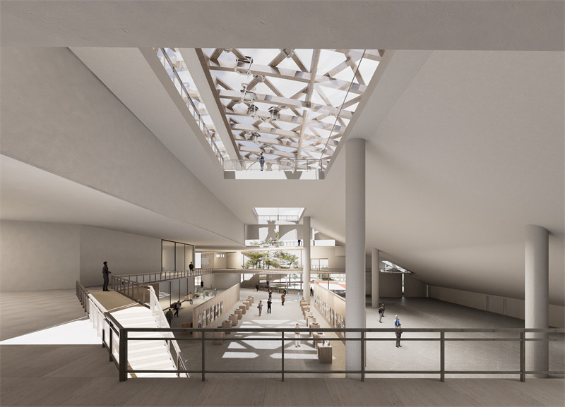 空间功能整合:体育活动中心的设计思路是将教学区、生活区、运动区等多种功能区域有机地连接在一起,形成一个整体。这里不仅提供给学生丰富的体育活动资源,还为教师和其他员工创造了一个互动空间。中心通过合理的空间布局,营造出流动的、开放的环境,鼓励师生之间的交流,增强校园的凝聚力。