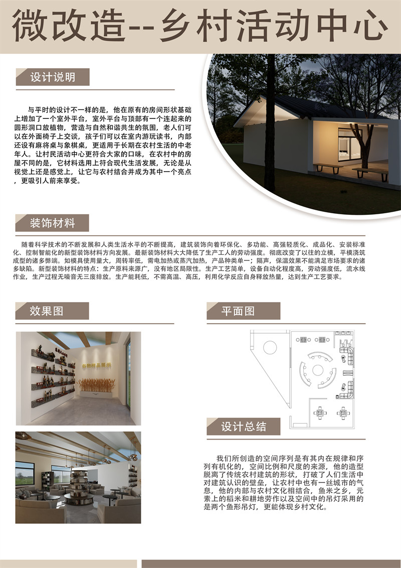 从社会角度来看,村民活动中心的建立,为村民们提供了一个交流、娱乐、学习的平台。在这里,村民们可以举办各种文化活动,如文艺演出、书画展览、科普讲座等,丰富自己的精神生活;可以组织志愿服务活动,关心关爱弱势群体,促进乡村的和谐发展。此外,村民活动中心还可以成为乡村旅游的一个新亮点,吸引更多的游客前来参观游览,为乡村经济的发展注入新的活力。